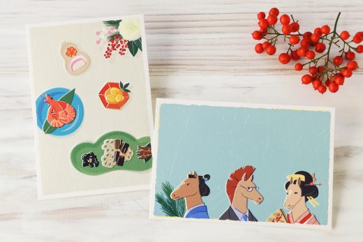 2026うま年の年賀状と、おせちの絵柄の年賀状の販売を開始しました。